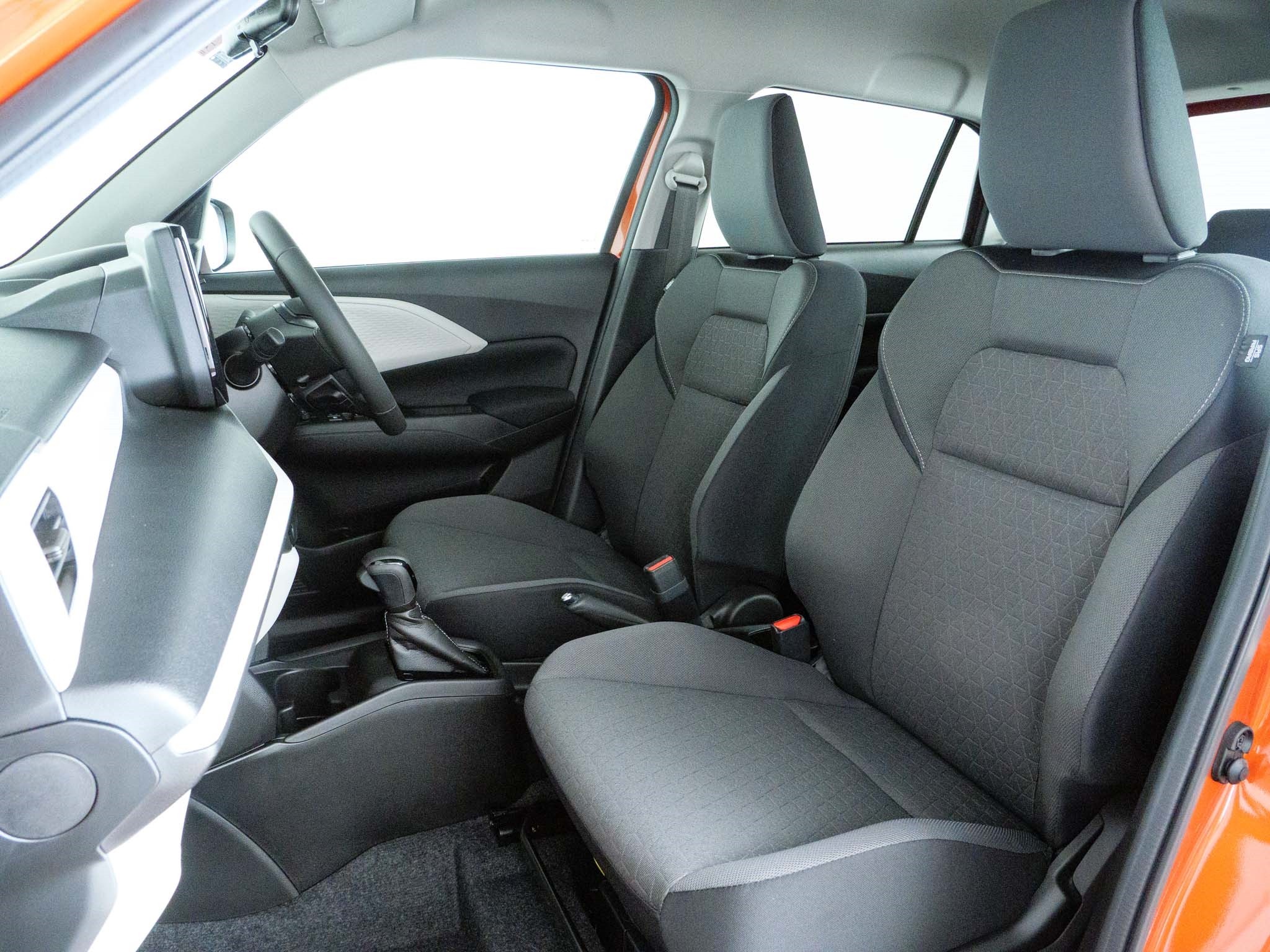ENGINE & TRANSMISSION 1.2 litre, 12 valve, VVT 3-cylinder, MPI fuel injection 12V Hybrid ISG (Integrated Starter Generator) Engine auto stop-start system 60.9 kW @ 5,700 rpm 111.8 Nm @ 4,500 rpm CVT automatic FUEL 4.3L/100km fuel consumption 3P-WLTP conversion 97g/km CO2 emissions 3P-WLTP conversion 95-98 RON with 37 L fuel tank capacity INTERIOR Keyless entry and push-button start Manual air conditioning with digital display Tilt and telescopic adjustable steering wheel Leather steering wheel with cruise, lane keep assist, phone, info display and audio controls Touchscreen infotainment - Six speaker Tuner/MP3/WMA - Bluetooth and USB input - Android Auto and wireless Apple CarPlay - Satellite navigation USB-A and USB-C charging ports Outside temperature gauge Engine performance and hybrid battery status Fuel display (instant, average and range) Digital speed (running and average) Dual control heated front seats Drivers side seat height adjuster EXTERIOR 16-inch alloys with 185/55R16 tyres Privacy glass (rear passenger and hatch) Electrically adjustable and heated side mirrors LED projector headlamps Automatic light sensing headlamps LED daytime running lamps (DRLs) Guide Me light Rear centre fog lamp SAFETY Reverse camera Dual Sensor Brake Support II Traffic sign recognition Lane keep assist Lane departure warning and prevention Adaptive cruise control with stop & go Weaving alert Headlamp high beam assist Blind spot monitor Rear cross traffic alert Rear parking proximity sensors Hill hold control ESP, ABS, EBD and brake assist 6 SRS airbags (front, side and curtain) Seatbelt reminder all seats Child seat tether and ISOFIX anchorages Security alarm