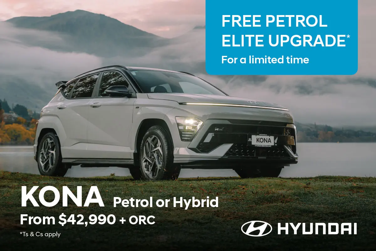 *Buy a KONA 2.0L Petrol Active for $42,990 + ORC from 1 September until 31 October 2025 and we’ll upgrade you to a KONA 2.0L Petrol Elite at no extra cost. Not available in conjunction with any other offer.
