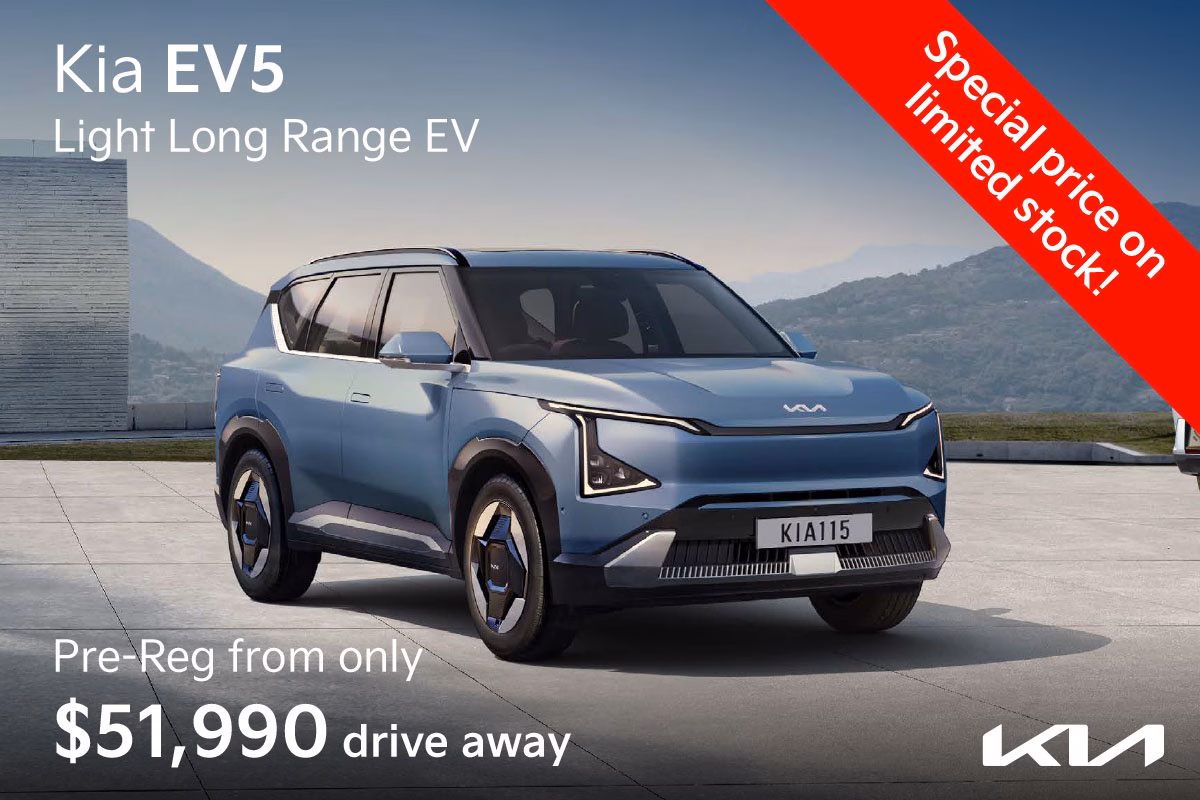 Make the switch to electric and save up to $17,500 on a pre-registered Kia EV5, now available from just $51,990 driveaway. This award-winning, all-electric mid-size SUV delivers outstanding value with an impressive range of up to 555km, making it ideal for both daily commuting and longer adventures. Crowned 2024 EV of the Year, the EV5 combines efficiency, performance, and cutting-edge design.