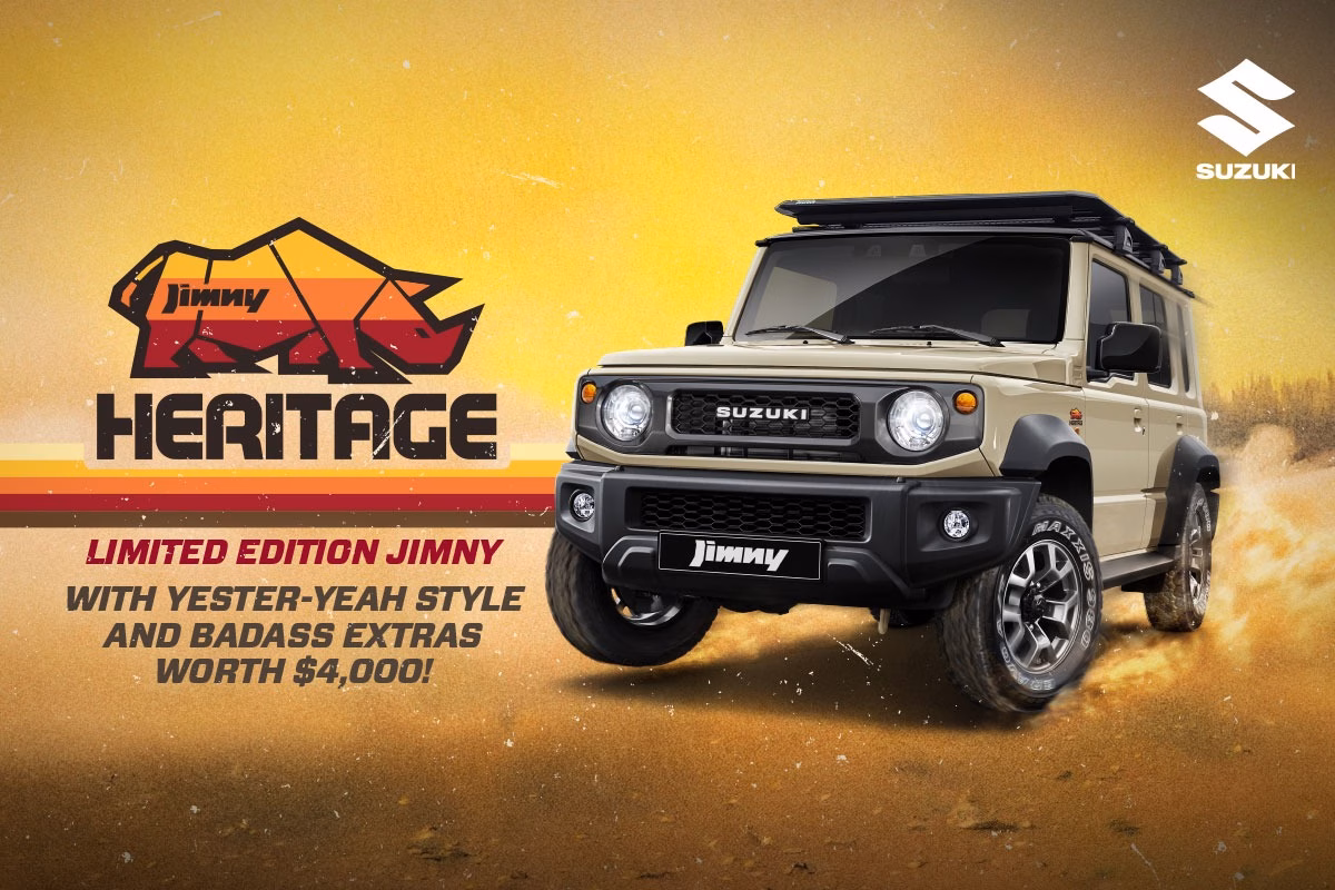 Introducing the Suzuki Jimny Heritage Limited Edition – a bold tribute to the iconic off-roader’s rugged legacy. Built for adventure, this special edition blends classic 4×4 spirit with modern capability, featuring a robust ladder frame, high ground clearance, and a legendary 4WD system. With only 100 units available, and now less than 50 left, it’s a rare opportunity to own a piece of Jimny history, available in both 3-door and 5-door variants across the full colour range.
