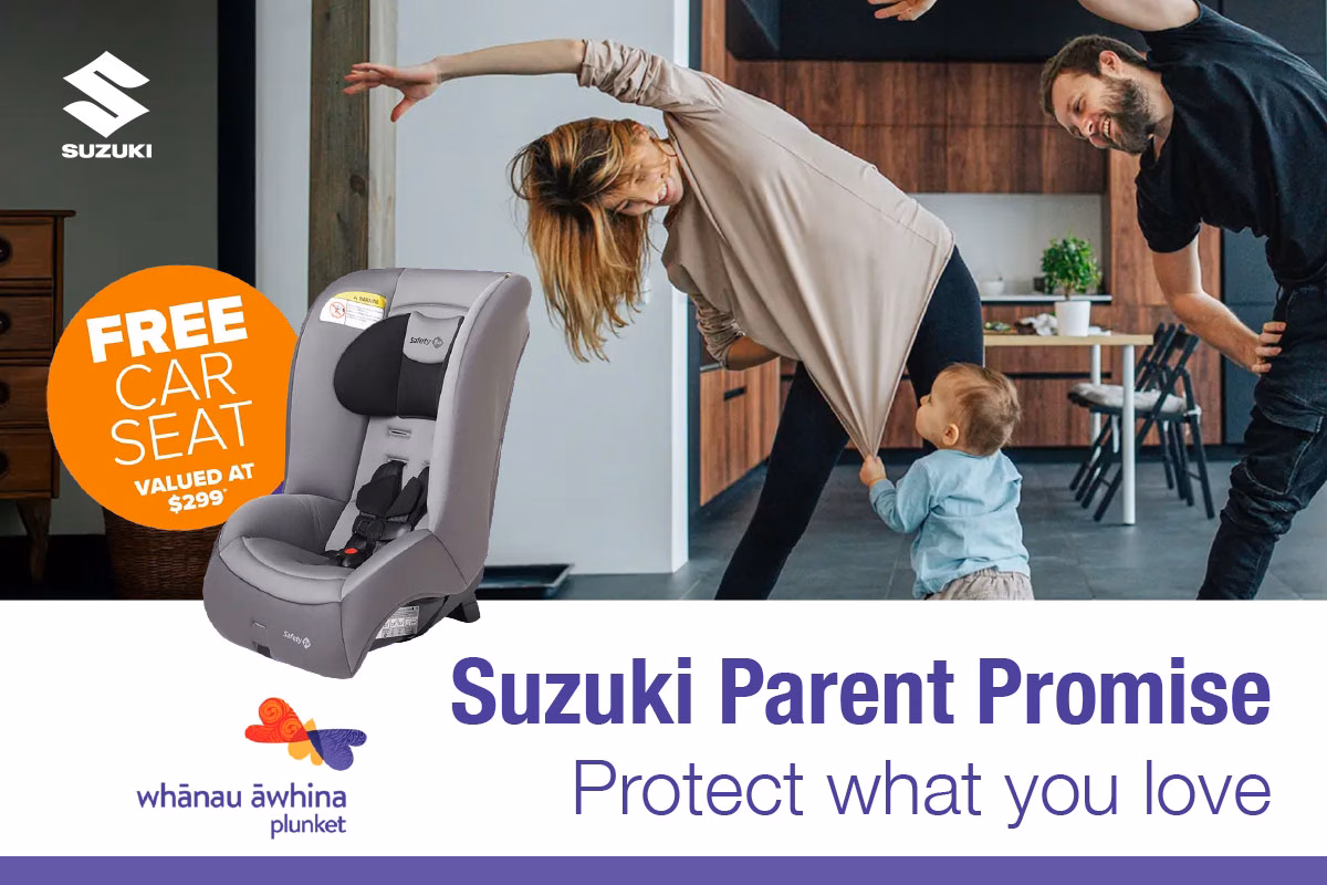 We’re proud to support the Suzuki Parent Promise — because keeping families safe on the road matters. When you buy a new Suzuki, you’ll receive a free Plunket-recommended child car seat (valued at $299), giving you one less thing to worry about as you start your next adventure.