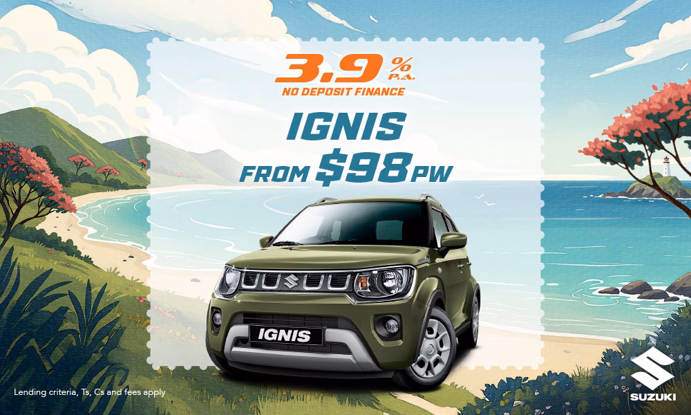 The $97.87 per week payment is collected weekly and these repayments are based on the Suzuki Ignis 1.2 GLX Manual with the RSP of $22,450, $1,695 on road costs, $1,695 deposit, a 3.9% p.a. interest rate fixed for the 60-month term of the loan. A $130 UDC establishment fee, $10.35 PPSR fee, a weekly maintenance fee of $0.50, and a dealer origination fee of $395 will apply. The total repayment cost is $25,446.20. This offer is valid for a limited time or while stocks last. Finance is provided through UDC finance Limited. UDC’s lending criteria, standard terms and conditions apply.